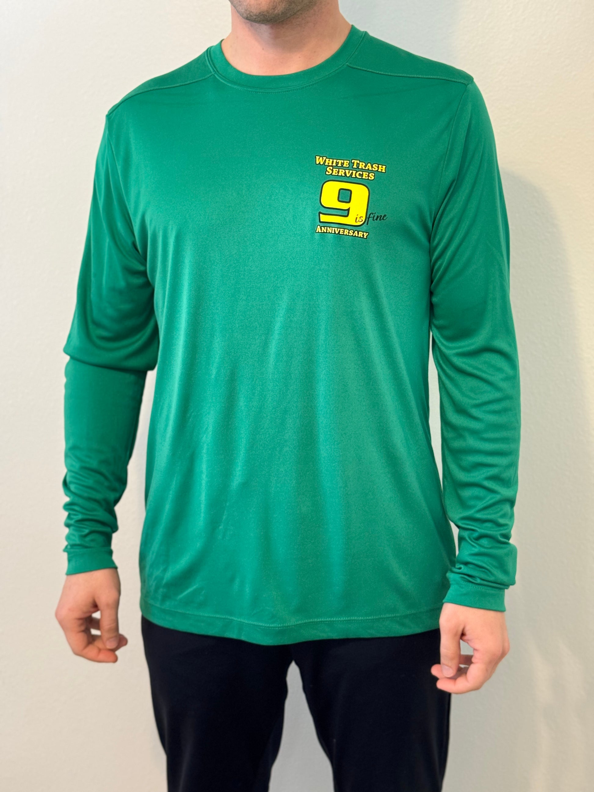 Celebrate nine years of excellence with our vibrant green Sport-Tek Long Sleeve Shirt! Made from 100% lightweight polyester, this shirt is not only super soft but also moisture-wicking, keeping you dry and comfortable during any activity—whether you're working out, running errands, or just enjoying a casual day out.