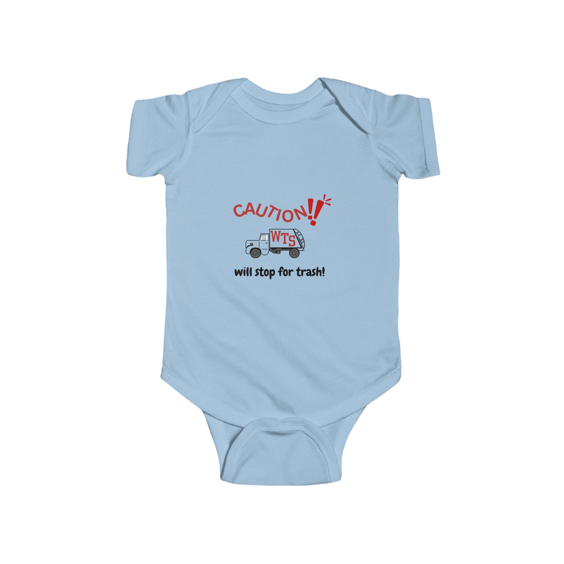 Graphic Baby Onesie: "CAUTION! Will stop for trash!"