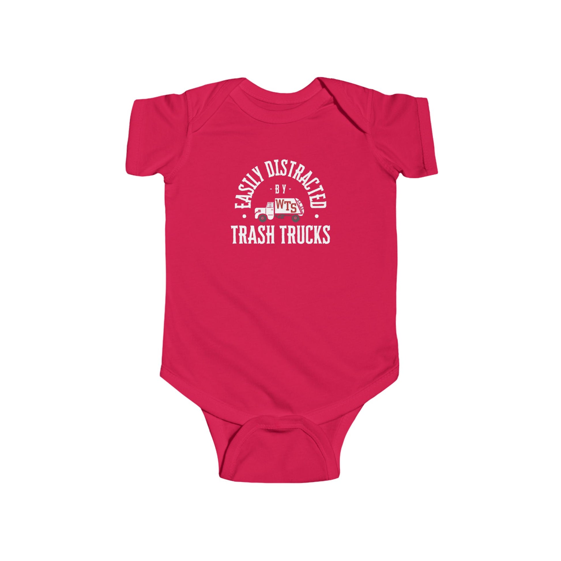 Graphic Baby Onesie: "Easily Distracted by Trash Trucks!"